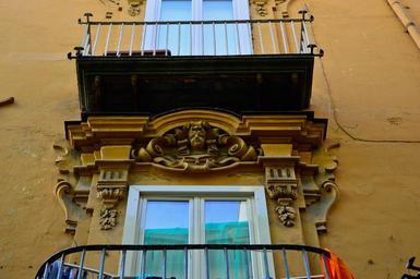 Keywords: Palazzo Costantino 6.jpg it Dettaglio delle decorazioni in facciata own Pinotto992 Palazzo Costantino alla Castigliola Napoli