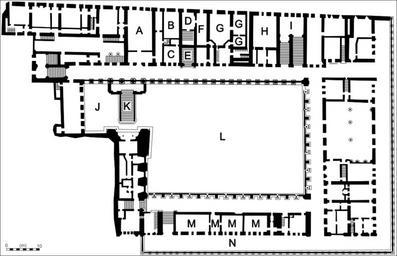 | Keywords: Palazzo Ducale Venezia Tavola 12, Francesco Zanotto-notxt.svg it Pianta del piano delle Logge del Palazzo Ducale di Venezia tratta da Il Palazzo Ducale di Venezia illustrato da Francesco Zanotto con incisioni Venezia 1841 A - Sala della Cancelleria Ducale B - Sala della Milizia da Mar C - Stanza della Bolla Dogale D - Sala dello Scrigno E - Scala d'Oro F - Avogadria G - Sala dei Notai H - Sala dei Censori I - Scala dei Censori J - Cortiletto dei Senatori K - Scala dei Giganti L - Cortile M - Porticato Foscari N - Loggia Foscari 2014-08-10 20 43 24 http //books google it/books id Gg5BAAAAcAAJ printsec frontcover hl it v onepage q f false Francesco Zanotto PD-old-100 Floorplans and facades of the Doge's Palace |