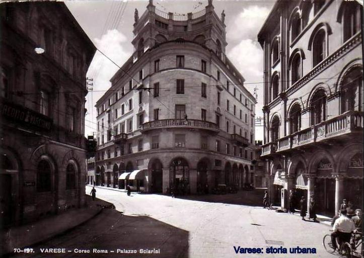 | Keywords: varese corso roma corsoroma corso aldo moro corsoaldomoro architecture All'imbocco di corso Roma fu costruito tra il 1930 e il 1933 l'imponente palazzo Sciarini (arch. Aldo Scala e ing. Antonino Mazzoni) in sostituzione dell'edificio occupato dal Ristorante Orologio. Sulla destra l'edificio progettato dall'ing. Paolo Cantù (1889), sulla sinistra il primo palazzo del Credito Varesino. All'imbocco di corso Roma fu costruito tra il 1930 e il 1933 l'imponente palazzo Sciarini (arch. Aldo Scala e ing. Antonino Mazzoni) in sostituzione dell'edificio occupato dal Ristorante Orologio. Sulla destra l'edificio progettato dall'ing. Paolo Cantù (1889), sulla sinistra il primo palazzo del Credito Varesino. |