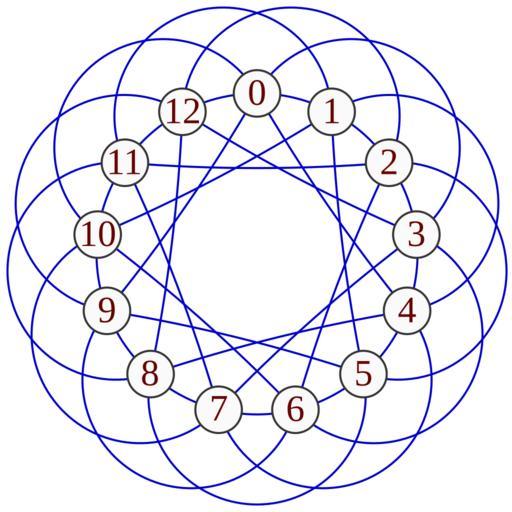 | Keywords: Paley13.svg Paley graph of order 13 drawn as a circulant graph Transferred from en wikipedia 2006-11-04 David Eppstein wikipedia en David Eppstein original upload log page en wikipedia Paley13 svg 2007-01-21 01 31 David Eppstein 468×468×0 5334 bytes <nowiki>More attempted svg fixup</nowiki> 2007-01-21 01 11 David Eppstein 256×256×0 4653 bytes <nowiki>Fix svg</nowiki> 2006-11-04 19 19 David Eppstein 256×256×0 4654 bytes <nowiki>The Paley graph of order 13 drawn as a circulant graph SVG replacement for Image Paley13 png </nowiki> 2006-11-04 17 15 David Eppstein 443×440×0 4538 bytes <nowiki>The Paley graph of order 13 drawn as a circulant graph SVG replacement for Image Paley13 png Please do not use this image until font issues are fixed; see discussion at Image talk Paley13 png </nowiki> 2006-11-04 17 01 David Eppstein 443×440×0 4540 bytes <nowiki>The Paley graph of order 13 drawn as a circulant graph SVG replacement for Image Paley13 png </nowiki> Files by User David Eppstein from en wikipedia 6-regular graphs Paley graphs |