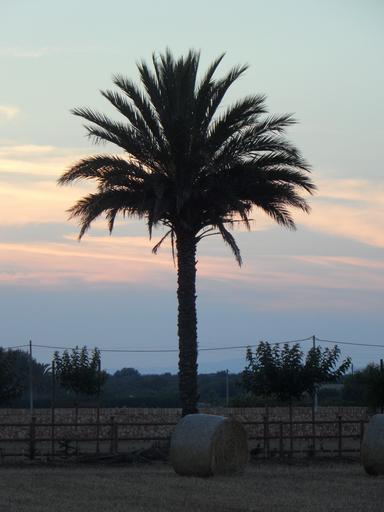 Keywords: palm field abendstimmung mowed straw straw bales hay bales landscape mallorca rural evening sky sunset mood evening silhouette