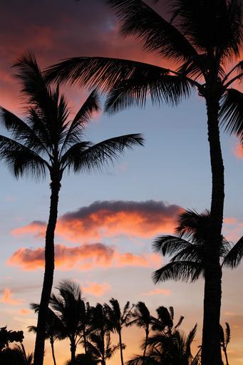 Keywords: palm tree palm palms sunset pink sky clouds night sky evening silhouettes