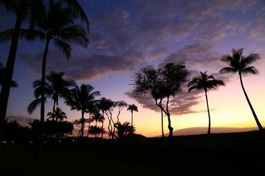 Keywords: palm tree sunset silhouettes hawaii
