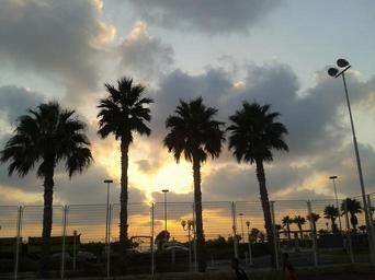 Keywords: palm trees cloud 4 palm sunset sky light color in the evening mood landscape colors clump wood