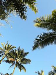 Keywords: palm trees sky blue sky green sunshine summer sky wood leaf summer blue palm palm leaves