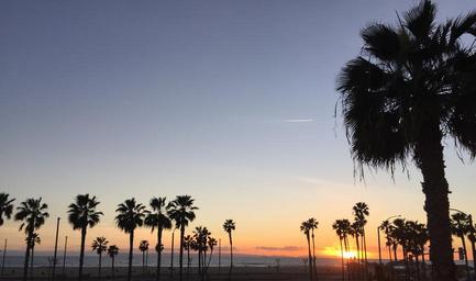 Keywords: palm trees sunset beach evening silhouette