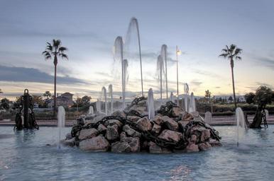 Keywords: palms chains source evening water stones art