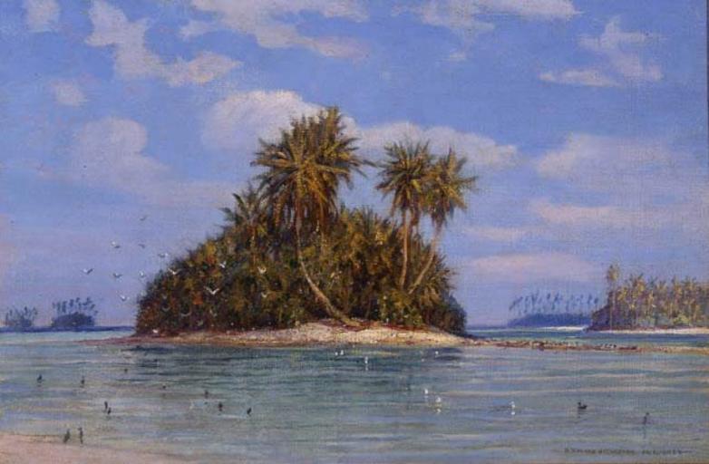 Keywords: 'Palmyra' by D. Howard Hitchcock, 1914.JPG Palmyra by D Howard Hitchcock 1914 oil on canvas 24 x 30 inches Frazier Fine Arts 1914 D Howard Hitchcock PD-old-auto 1943 Hawaii in paintings by D Howard Hitchcock Palmyra Atoll