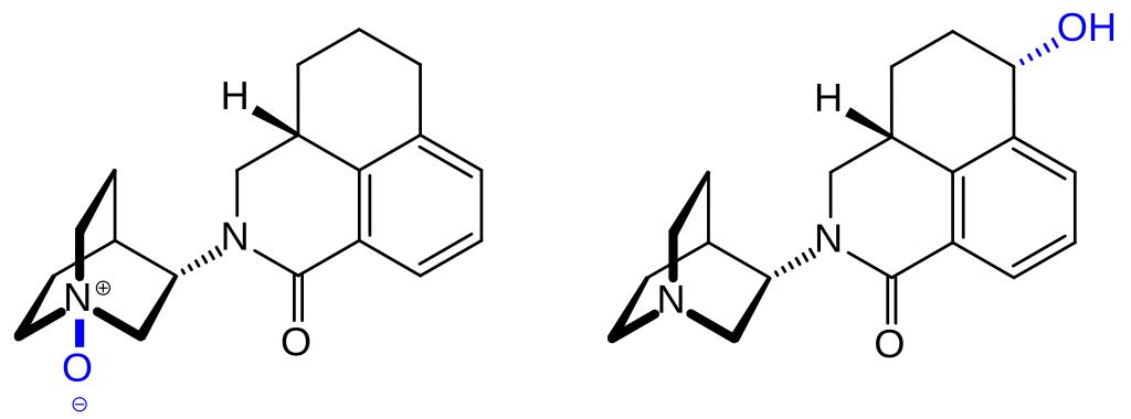 Keywords: Palonosetron metabolites.svg palonosetron N-oxide left and 6S-hydroxy-palonosetron right own Anypodetos 2016-07-12 Other fields B v + Drug metabolism Selective 5-HT3 antagonists setrons Cc-zero
