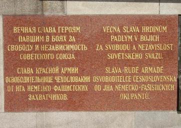Keywords: Pam RA Ostrava 05.JPG cs Ostrava; Památník Rudé armády v Komenského sadech nápis na pravém křídle Own Tedmek 2009-04-19 Images by Tedmek World War II memorial in Komenského sady