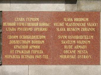 Keywords: Pam RA Ostrava 06.JPG cs Ostrava; Památník Rudé armády v Komenského sadech nápis na levém křídle Own Tedmek 2009-04-19 Images by Tedmek World War II memorial in Komenského sady