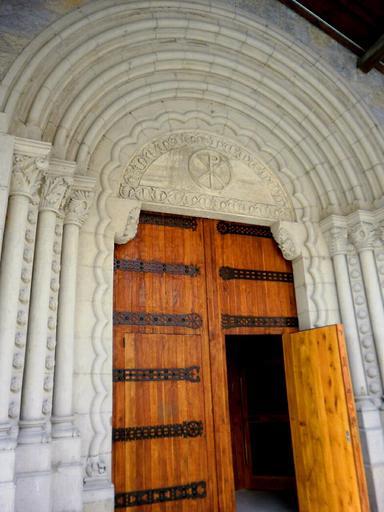 Keywords: Pamplona - El Salvador 01.jpg en Portada neorrománica de la iglesia de El Salvador Pamplona España own Zarateman 2010-03-07 Church of El Salvador Pamplona Church portals in Navarre Church doors in Navarre cc-zero Brown doors