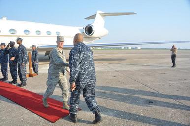 | Keywords: Panamax 2012 120814-N-IU238-048.jpg en Rear Adm Sinclair Harris commander U S Naval Forces Southern Command and U S 4th Fleet COMUSNAVSO/C4F greets U S Air Force Gen Douglas Fraser commander U S Southern Command USSOUTHCOM during his visit to Naval Station Mayport Fraser visited NS Mayport to observe a portion of PANAMAX ab annual USSOUTHCOM-sponsored exercise series that focuses on ensuring the defense of the Panama Canal Official U S Navy photo by Mass Communication Specialist 2nd Class SW Robert A Wood Sr <br>Unit Defense Imagery Management Operations Center 2012-08-14 Petty Officer 2nd Class Robert Wood Sr https //www dvidshub net/image/646804/panamax-2012 120814-N-IU238-048 2012-08-17 06 46 MAYPORT FL US PD-USGov-Military-Navy Sinclair Harris Naval Station Mayport PANAMAX 2012 Images from DoD uploaded by Fæ |