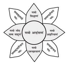 | Keywords: Pañca-Parameṣṭhi.JPG en Obeisance to Pañca-Parameṣṭhi five supreme beings and samyaktv righteousness From the non-copyright book https //archive org/details/SvayambhuWebCover page-1 hi पंच-परमेष्ठ को नमस्कार 2015 https //archive org/details/SvayambhuWebCover page 1 Vijay K Jain other versions cc-zero Jain paintings Uploaded with UploadWizard |