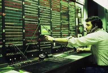 | Keywords: Panel Office Typical OGT.jpg en This is a photo of a typical Panel office OGT OutGoing Trunk Test This OGT has two positions The position on the left can do complete trunk testing to any number to which it is plugged into using the bank of pushbuttons shown to enter the dialed number The position on the right can only dial a fixed test number in this case the busy back number plus it can do voltmeter tests During a typical day the OGT can become a very busy place When stuck senders are traced to specific outgoing trunks that appear faulty they are busied out by placing a make busy plug in the trunk See photo There are two trunks busied out Shooting trunk troubles can become a time consuming task Especially on open circuits Then you had to pull the trunk records and call the MDF of all intermediate offices Have a frameman put a short across the Tip and Ring of the appropriate pair in the appropriate trunk cable and using the volt meter look for the short I would generally start at the terminating office to make sure it wasn't a terminating equipment problem then work backwards As can be seen in the photo trunk groups are identified by different color strips Each strip could hold up to twenty trunks This helped staff find a specific trunk group Another important part of the OGT is the transmission level meter which is located in the middle of the OGT the cream colored device with its own meter and level switch On a routine basis all outgoing trunks were manually tested by dialing a special 1000 cycle test number over the trunk The reading was taken and logged into trunk records and then the trunk was released If the trunk was too far out of spec it was made busy for further testing The OGT also had phones lines on it appearing along the bottom of the vertical panels The lines were used when testing with other switchman or frameman in the local office of a distant office The phone lines were hooked to a very early form of key system based completely on relay logic The frame of the OGT was made out of a beautiful hard wood After some offices were cut over to newer machines some folks took wooden side panels from the OGT home to build projects This of course required the approval of the supervisor en wikipedia 2009-01-07 Panel Switchman wikipedia en Panel Switchman Original upload log en wikipedia Panel+Office+Typical+OGT jpg wikitable - 2009-01-07 21 41 2972×2000× 2800461 bytes Panel Switchman This is a photo of a typical Panel office OGT OutGoing Trunk Test This OGT has two positions The positiion on the left can do complete trunk testing to any number to which it is plugged into The position on the right can only dial a fixed test numbe Telecommunications |