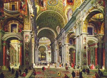 | Keywords: Pannini, Giovanni Paolo - Inneres von St. Peter in Rom - 1755.jpg Artwork creator Giovanni Paolo Pannini Interior of St Peter's Rome Inneres von St Peter in Rom 1731 Oil on canvas 145 7 x 228 3 cm Institution Niedersächsisches Landesmuseum Hannover Germany Scan settings 600 dpi million colors High quality own book scan Book scan of the book Holle Gerard du Ry van Beest Hg Kunstgeschichte Mueller Karl Erlangen 1994 ISBN 3860703528 p 589 Bildnachweis S 766 3 Spalte Other versions 150px <gallery> File Giovanni Paolo Panini - Interior of St Peter's Rome jpg Same artist same motif Saint Louis Art Museum 1731 smaller data size </gallery> Motif PD-old-100 Scan Interior of Saint Peter's Rome 1755 paintings Rome in the 1750s Religious standards in Italy Work by Mattes 2009 1750s paintings from Italy 1750s paintings in Germany Scans by Mattes Scanned with HP Photosmart C5200 |