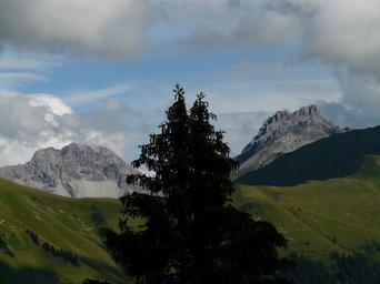 Keywords: panorama alpine mountains mountain tree fir alpenpanorma meadow alm