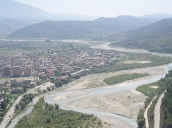 Keywords: Panorama Berat, Albania.JPG view of the new part of Berat Albania Taken from the castle own taken by myself 2006-08 User Terfili Berat Osum