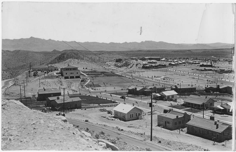 | Keywords: "Panorama of Boulder City, Nevada from Water Tank Hill showing construction progress to date." - NARA - 293700.jpg Houses between Lodge Road and Denver Street are shown in the foreground Note the lawn development around the Government residences next to Nevada Highway At center left is Government Administration Building overlooking the Government Park later Wilbur Square Park and the Government dormitory No 1 Park Street runs just below the developed lawn of the Government park In the center right Colorado Street leads to Utah Street in the background Scope and content Photograph from Volume Two of a series of photo albums documenting the construction of Hoover Dam Boulder City Nevada General notes This image is part of a panoramic view which includes items 1318-1322 The original image measures approximately 32 inches wide 293700 Local identifier Department of the Interior Bureau of Reclamation Engineering and Research Center 05/18/1981 - 03/04/1988 NARA's Rocky Mountain Region Denver NRGA Building 48 Denver Federal Center West 6th Avenue and Kipling Street Denver CO 80225-0307 1932-06-30 Record group Record Group 115 Records of the Bureau of Reclamation 1889 - 2008 Record group ARC 444 Photograph albums compiled 1903 - 1972 Series ARC 293611 File unit File unit ARC Variant control numbers NAIL Control Number NRG-115-CONSTPHO85006-BC21318 Other versions <gallery> File Panorama_of_Boulder_City _Nevada_from_Water_Tank_Hill_showing_construction_progress_to_date _-_NARA_-_293700 tif tif </gallery> <gallery> File Panorama_of_Boulder_City _Nevada_from_Water_Tank_Hill_showing_construction_progress_to_date _-_NARA_-_293700 jpg Government Administration Building area June 30 1932 File View of Administration Building area Boulder City showing development of landscaping - NARA - 293707 jpg Government Administration Building area August 1 1932 File Government Administration Building and grounds as seen from the roof of the school building Boulder City View - NARA - 293724 jpg Government Administration Building August 27 1932 </gallery> NARA-cooperation PD-USGov U S Government Administration Building Boulder City 1932-06-30 Boulder City housing estate for Hoover Dam builders 1932-06-30 Streets in Boulder City Nevada Denver Street 1932-06-30 1932 in Nevada Boulder City Views from Water Tank Hill Boulder City Nevada 1932-06-30 Photos of Boulder City Nevada from NARA general view |