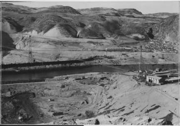 | Keywords: Panorama of general works area taken from top of forebay slope on the east side - NARA - 294096.jpg Scope and content Photograph from Volume Two of a series of photo albums documenting the construction of the Grand Coulee Dam and related work on the Columbia Basin Project Full caption reads Panorama of general works area taken from top of forebay slope on the east side From left to right at top of picture can be seen the silos in the cement storage and blending plant the 60-inch main line conveyor running to the spoil pile in Rattlesnake Canyon; the 3 000 ft steel cellular west side cofferdam behind which is the exposed bedrock; concreting plant; bents for the high and low concrete placing trestles; the sand and gravel conveyor suspension bridge; Coulee Dam the Government townsite; the highway bridge and farther down the river the combination highway and railroad bridge built by the contractor In the near foreground is the general east side excavation area with conveyors running to the cross-river conveyor connecting with the main line on the west side; the east side cofferdam; the machine shop area of the contractor; the sand and gravel unloading arrangement and Mason City the contractor's camp General notes This image is part of a panoramic view which includes items 807 808 and 809 The original image is approximately 28 inches in width 294096 Local identifier Department of the Interior Bureau of Reclamation Engineering and Research Center 05/18/1981 - 03/04/1988 NARA's Rocky Mountain Region Denver NRGA Building 48 Denver Federal Center West 6th Avenue and Kipling Street Denver CO 80225-0307 1935-11-05 Record group Record Group 115 Records of the Bureau of Reclamation 1889 - 2008 Record group ARC 444 Photograph albums compiled 1903 - 1972 Series ARC 293611 File unit File unit ARC Variant control numbers NAIL Control Number NRG-115-CONSTPHO85006-COLBASIN2807 Other versions <gallery> File Panorama_of_general_works_area_taken_from_top_of_forebay_slope_on_the_east_side_-_NARA_-_294096 tif tif File Panorama_of_general_works_area_taken_from_top_of_forebay_slope_on_the_east_side_-_NARA_-_294096 jpg jpg </gallery> NARA-cooperation PD-USGov Construction of the Grand Coulee Dam |