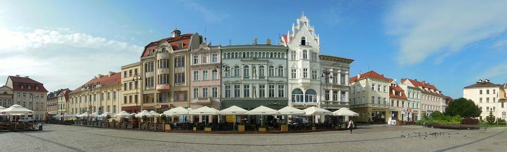 Keywords: panorama market square bydgoszcz poland parasols cafes restaurants buildings historic