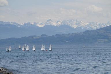 Keywords: panorama outlook lake constance landscape view alpine snow summer distant view good view mountains water lake rest idyll switzerland swiss shore sailing school sailing ships sail blue