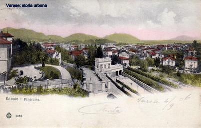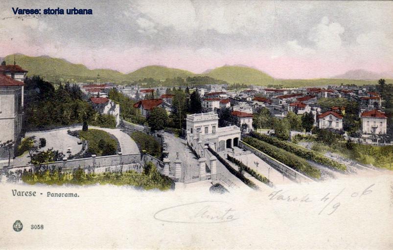 | Keywords: Versione colorata. Panorama ripreso da Bosto all'altezza di villa San Pedrino. A destra Giubiano, al centro la stazione ferroviaria delle Ferrovie dello Stato (1865) e a sinistra il centro cittadino con il campanile di San Vittore. In basso a destra via Magenta. varese |