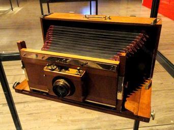 | Keywords: Panoramic camera used by the Societe d'Impression de la Cote z'Azur, c. 1920 - Musée Nicéphore Niépce - DSC06000.JPG Exhibit in the Musée Nicéphore Niépce 28 Quai Messageries Saône-et-Loire France There were no restrictions on photography in the museum I took this photograph 2011-04-27 10 16 41 Daderot Public domain Musée Nicéphore Niépce | ||||