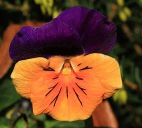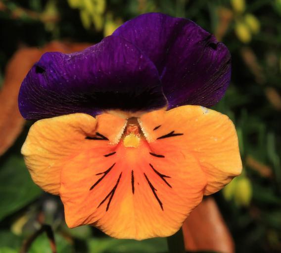 Keywords: pansy flower blossom bloom orange purple violaceae ranunculaceae close ornament eye catcher