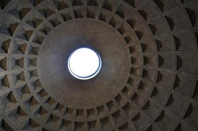 | Keywords: round circle geometric building rotunda architecture text texture lines This 2000-year old temple is the largest reinforced concrete dome ever built. It was built in AD 120 over Marcus Agrippa's original 27 BC temple. Pantheon is a derivation of the Greek word pan (all) and theos (god), but AD 608 it was consecrated as a Christian church and it's now officially know as the Basilica di Santa Maria ad Martyres. It is considered ancient Romans greatest architectural achievement. Its diameter is exactly equal to the Pantheon's interior height of 43.3 meters. This 2000-year old temple is the largest reinforced concrete dome ever built. It was built in AD 120 over Marcus Agrippa's original 27 BC temple. Pantheon is a derivation of the Greek word pan (all) and theos (god), but AD 608 it was consecrated as a Christian church and it's now officially know as the Basilica di Santa Maria ad Martyres. It is considered ancient Romans greatest architectural achievement. Its diameter is exactly equal to the Pantheon's interior height of 43.3 meters. |