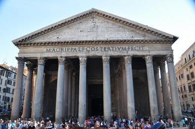 | Keywords: building architecture colonnade column outdoor coliseum This 2000-year old temple is the largest reinforced concrete dome ever built. It was built in AD 120 over Marcus Agrippa's original 27 BC temple. Pantheon is a derivation of the Greek word pan (all) and theos (god), but AD 608 it was consecrated as a Christian church and it's now officially know as the Basilica di Santa Maria ad Martyres. It is considered ancient Romans greatest architectural achievement. Its diameter is exactly equal to the Pantheon's interior height of 43.3 meters. This 2000-year old temple is the largest reinforced concrete dome ever built. It was built in AD 120 over Marcus Agrippa's original 27 BC temple. Pantheon is a derivation of the Greek word pan (all) and theos (god), but AD 608 it was consecrated as a Christian church and it's now officially know as the Basilica di Santa Maria ad Martyres. It is considered ancient Romans greatest architectural achievement. Its diameter is exactly equal to the Pantheon's interior height of 43.3 meters. |