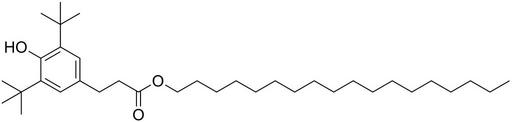 | Keywords: PAO-1 100.svg validSVG Structure of octadecyl 3- 3 5-di-tert-butyl-4-hydroxyphenyl propanoate Own 2014-03-21 Emeldir <span class signature-talk >talk</span> Chemical structure verified https //upload wikimedia org/wikipedia/commons/5/52/PAO-1_100 svg 1S/C35H62O3/c1-8-9-10-11-12-13-14-15-16-17-18-19-20-21-22-23-26-38-32 36 25-24-29-27-30 34 2 3 4 33 37 31 28-29 35 5 6 7/h27-28 37H 8-26H2 1-7H3 SSDSCDGVMJFTEQ-UHFFFAOYSA-N 2082-79-3 PD-chem Aging inhibitors | ||||