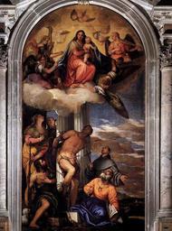 Keywords: Paolo Veronese 024.jpg Artwork creator Paolo Veronese Virgin and Child with Saints Vergine e il Bambino con Santi between 1564 1565 oil canvas Olio su tela size cm 420 230 Institution San Sebastiano Venice Venice object history credit line accession number WGA link 24778 http //www wga hu/art/v/veronese/02a/1choir/2altar jpg http //www wga hu/html/v/veronese/02a/1choir/2altar html http //mail wikipedia org/pipermail/wikide-l/2005-April/012195 html painting religious Italian 1551-1600 DEFAULTSORT Veronese;Virgin and Child with Saints;Venice San Sebastiano;1564 1565 Paintings by Paolo Veronese in San Sebastiano Venice Chancel Virgin and Child with Saints Sacra Conversazione by Paolo Veronese Saint John the Baptist by Paolo Veronese Saint Catherine of Alexandria by Paolo Veronese Mannerist religious paintings Baroque paintings of Saint Sebastian Paintings of angels Paintings of John the Baptist in Italy Paintings of Saint Catherine of Alexandria in Italy Paintings of Elisabeth of Hungary Paintings of Francis of Assisi Paintings of Saint Peter in Italy Paintings of Saint Sebastian in Italy Renaissance paintings of Madonna and Child in Italy WGA form painting WGA type religious WGA School Italian WGA time period 1551-1600 16th-century paintings of Madonna and Child 16th-century religious paintings in Italy
