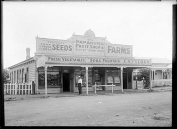 | Keywords: 1 blackandwhite monochrome architecture building outdoor photo border shop text black and white View of the Papakura Fruit Shop & Confectionary Store located in the Rea's Buildings. Next door (in the same wooden building) was the office of E R Tylden, land and estate agent. Photograph taken 1900-1930 by William A Price. Quantity: 1 b&w original negative(s). Physical Description: Dry plate glass negative 4.5 x 6.5 inches Papakura Fruit Shop & Confectionery Store. Price, William Archer, 1866-1948 :Collection of post card negatives. Ref: 1/2-000187-G. Alexander Turnbull Library, Wellington, New Zealand. natlib.govt.nz/records/23008264 View of the Papakura Fruit Shop & Confectionary Store located in the Rea's Buildings. Next door (in the same wooden building) was the office of E R Tylden, land and estate agent. Photograph taken 1900-1930 by William A Price. Quantity: 1 b&w original negative(s). Physical Description: Dry plate glass negative 4.5 x 6.5 inches Papakura Fruit Shop & Confectionery Store. Price, William Archer, 1866-1948 :Collection of post card negatives. Ref: 1/2-000187-G. Alexander Turnbull Library, Wellington, New Zealand. natlib.govt.nz/records/23008264 |