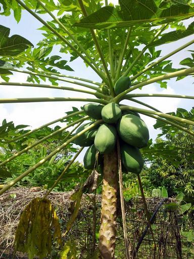 Keywords: papaya fruits plants trees greenery tropical fresh healthy nutritious delicious tasty sweet natural desserts green leafy flora leaves branches stems vegetation food crops edible