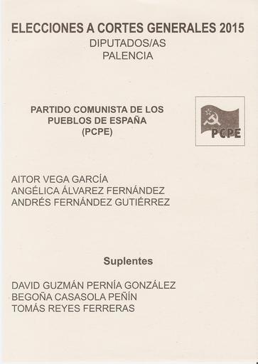 | Keywords: Papeleta Partido Comunista de los Pueblos de España elecciones generales 2015 circunscripción de Palencia.png es Papeleta para las votaciones al Congreso de los Diputados en las elecciones generales 2015 de España circunscripción de Palencia 2015-12-20 Junta Electoral Provincial de Palencia Junta Electoral Provincial de Palencia other versions Custom license marker 2016 01 03 PD-SpanishGov Ballot papers for the 2015 general election for the province of Palencia Uploaded with UploadWizard |