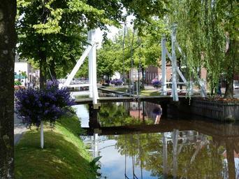 Keywords: papenburg germany lower saxony emsland channel bridge idyllic water drawbridge mirroring nature city