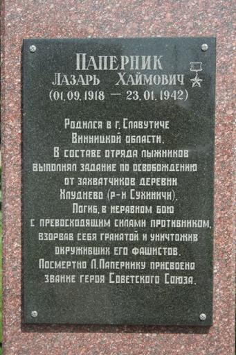 | Keywords: Papernik memorial Moscow table.jpg Памятник Ге ою Советского Союза Л Х Папе нику на улице Папе ника в оскве Табличка с надписью own 2007-05-28 Alex Rave cc-by-sa-2 5 PD-trivial PD-RU-exempt See also Image Papernik memorial Moscow jpg Lazar Papernik memorial |