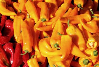 Keywords: paprika vegetables yellow food sweet peppers pepper market farmers local market