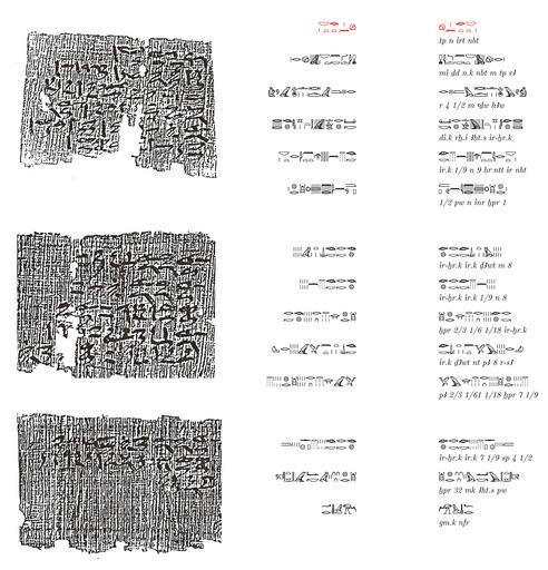 | Keywords: Papyrus-Moscou-10.jpg fr Problème M10 du Papyrus de Moscou à gauche le texte en hiératique ; Au centre transcription du texte en hiéroglyphes ; à droite inversion des signes et translittérations own d'après Mathematischer Papyrus des stastlichen Museums der Schönen Künste in Moskau Berlin 1930 Vasily Vasilievich Struve Bakha d'après Vasily Vasilievich Struve 1930 Moscow Mathematical Papyrus | ||||