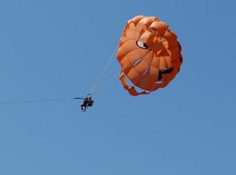 Keywords: parachute fly float sky blue paragliding parasailing sport paraglider airy screen montenegro holiday