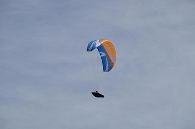 Keywords: parachute parachutist skydiving championship bavarian sky blue fly float glide mountain competition sport sport event hobby paragliding