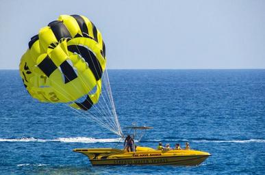 Keywords: parachute paragliding yellow balloon sky sport activity vacation recreation summer leisure action