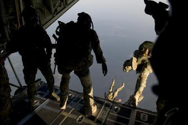 Keywords: parachute skydiving parachuting jumping training military para-rescuers skydivers plane parachutists danger halo high altitude special operations water ocean