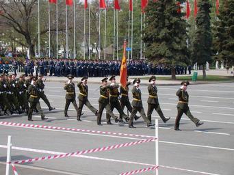 Keywords: parade victory day samara russia area troops soldiers officers banner