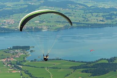Keywords: paraglider paragliding fly freedom tegelberg allgäu schwangau füssen lake forggensee alpine mountains bavaria blue sky