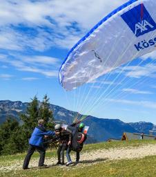 Keywords: paragliding longing fly partner cohesion sport freedom mountains parachute flight holiday float help keep hand in hand