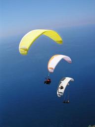 Keywords: paragliding parachute sky air paraglider freedom adventure extreme sport activity aerial view view harness extreme sports people leisure outdoors blue blue sky summer sunny clear color day high