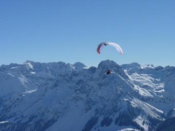Keywords: paragliding paraglider winter fly sport air sports sky blue hobby leisure airy mountains person alpine austria sun