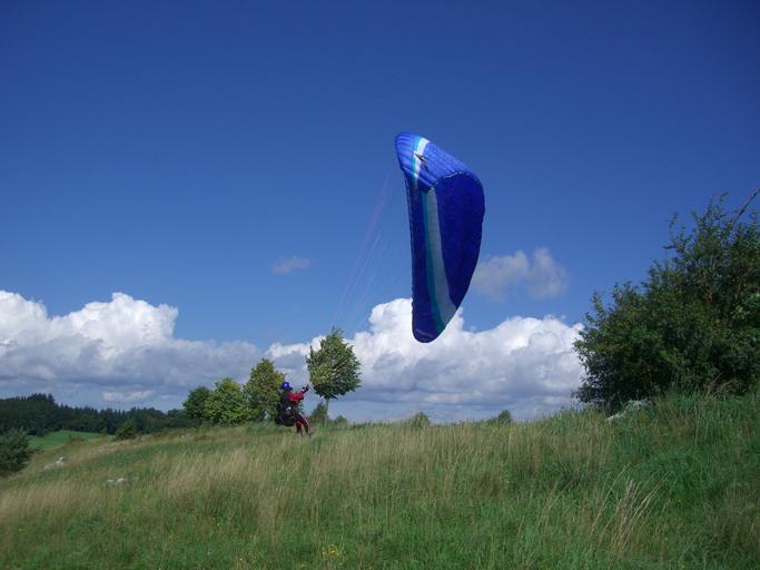 Keywords: paragliding start trial pilot paraglider floating sailing sky blue castle hill